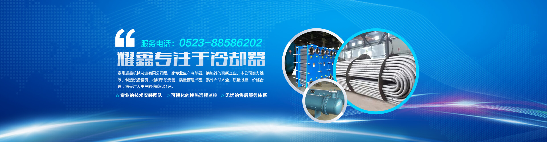 歡迎光臨泰州耀鑫機(jī)械制造有限公司官方網(wǎng)站,公司主營風(fēng)冷卻器 油冷卻器 板式換熱器 列管式冷卻器 冷卻器